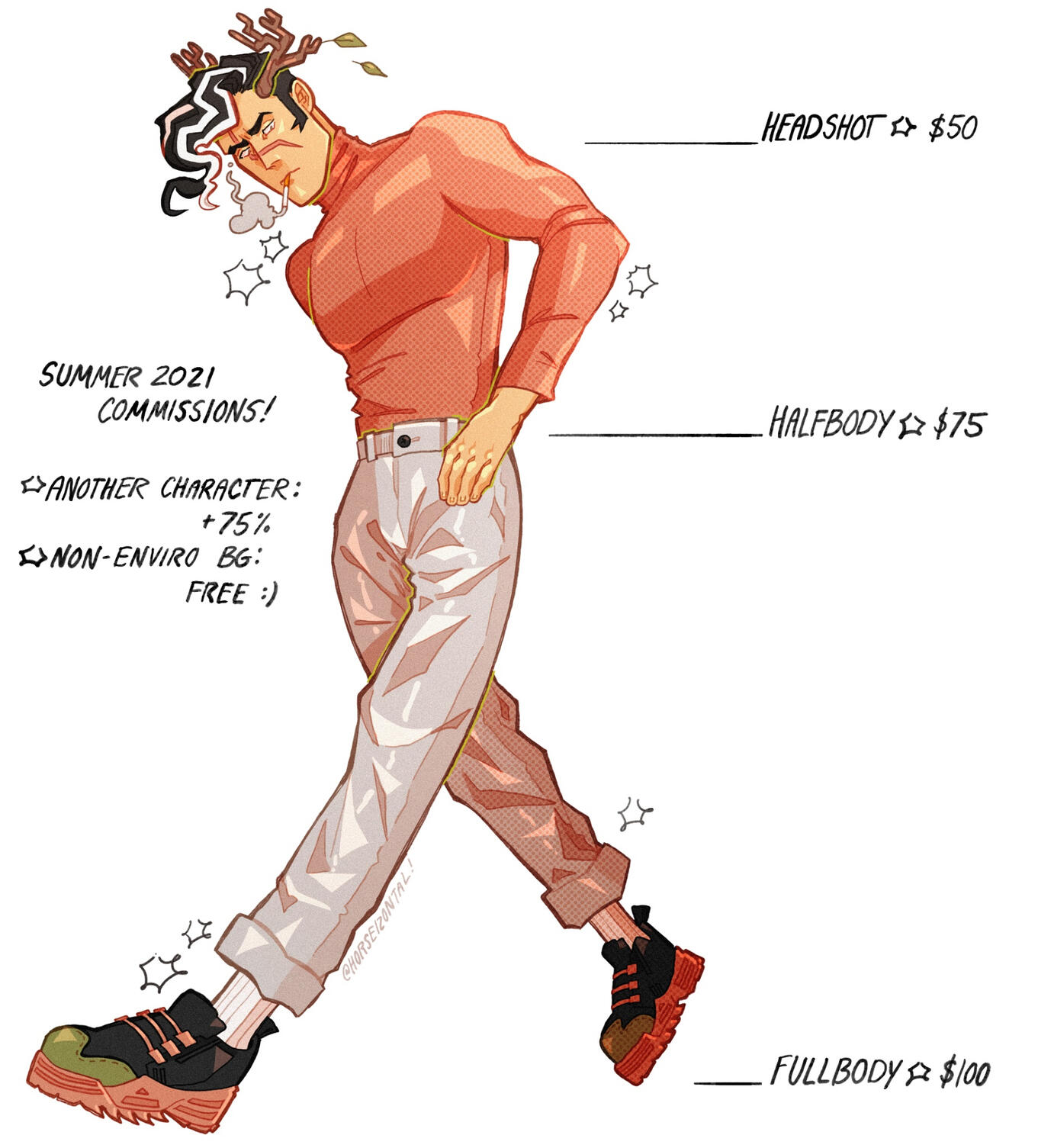 Currently doing linework in the no-sketch method featured in the price guide; assorted examples of general artistic style to expect included below said guide. You're paying for the prominently featured character in the piece — little giblets (surrounding items, accents, doodles) are free. TWO SLOTS PRESENTLY OPEN!HEADSHOT: $50 | HALFBODY: $75 | FULLBODY: $100